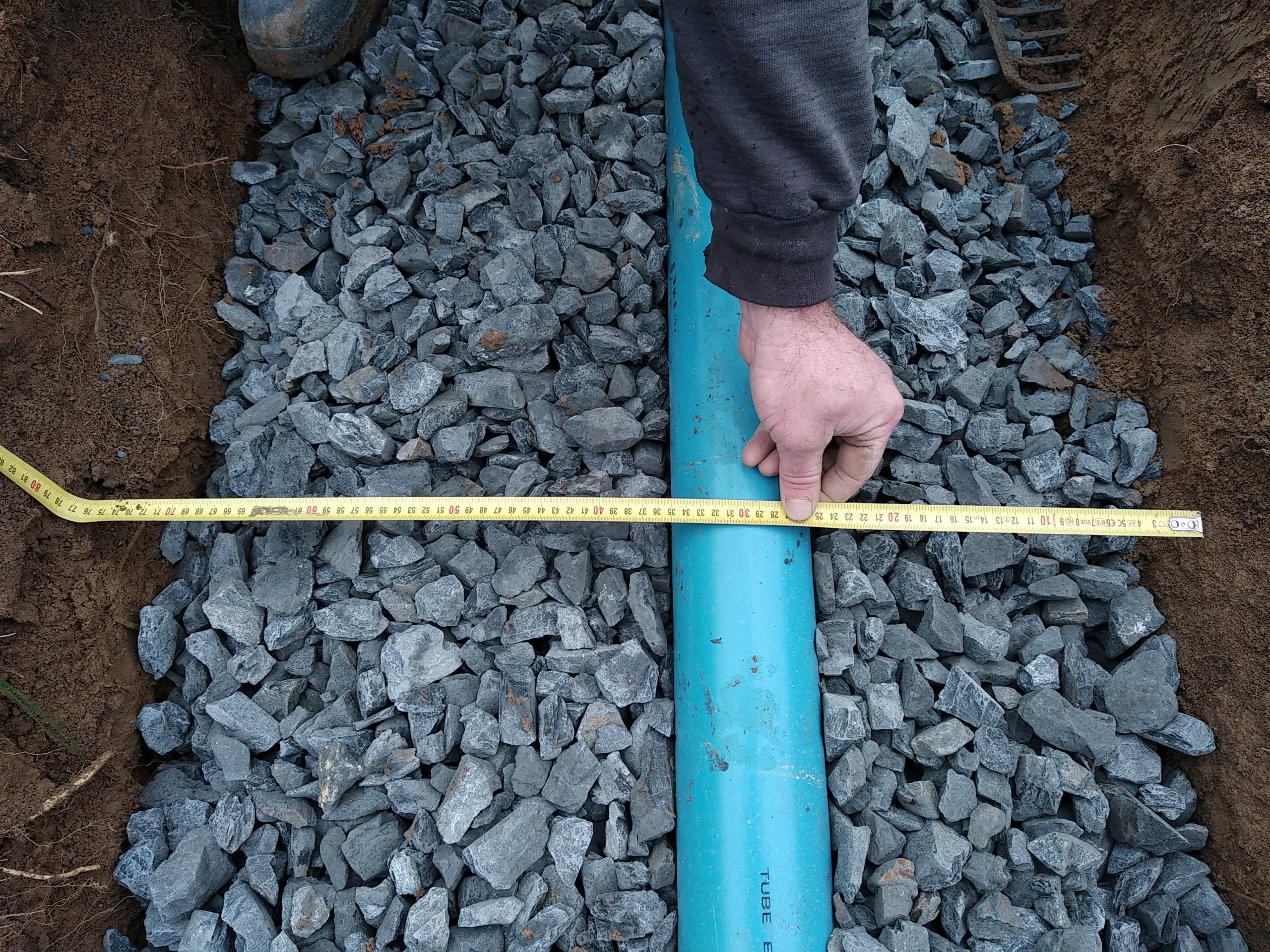 Le sol étant favorable et la place disponible suffisante, nous nous orientons vers une solution d'assainissement par infiltration dans le sol en place et contenue sur la parcelle. Nous faisons alors pleinement confiance à la flore bactérienne naturellement présente dans le sol pour digérer efficacement les eaux usées domestiques issues de cette habitation. La solution à nos yeux la plus simple, la plus efficace et surtout la plus durable quand elle est réalisable.