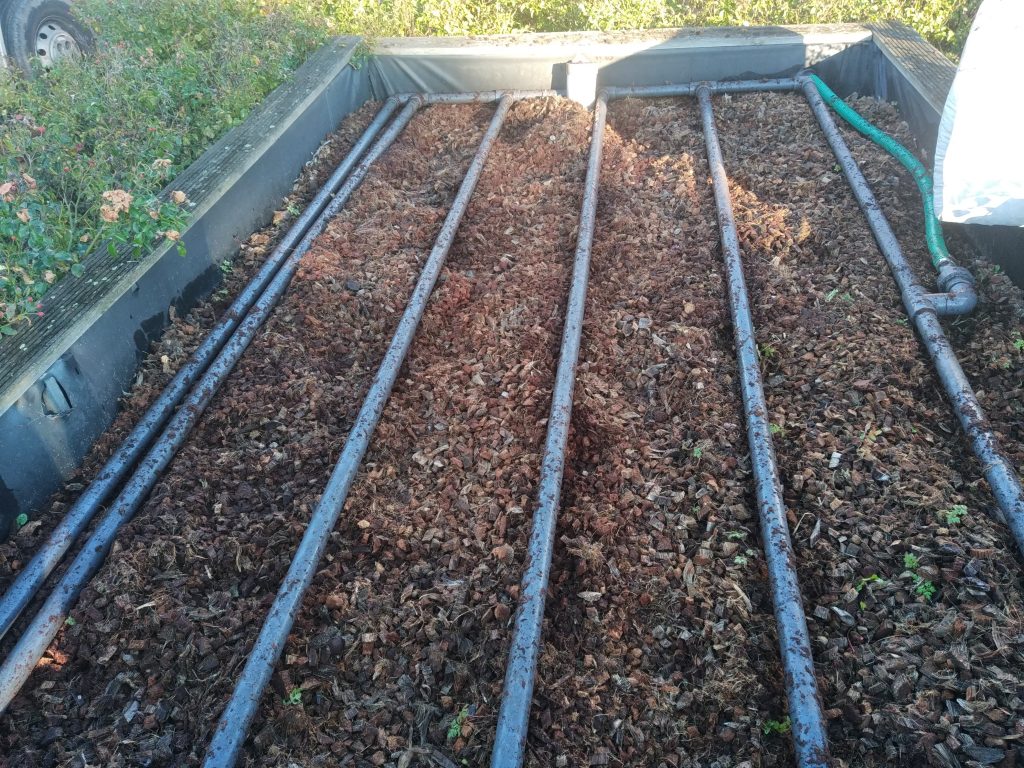 Lors de cet entretien, nous relevons les rampes d’aspersion, nous scarifions en profondeur le massif de coco et nous le rechargeons. Nous procédons aussi au lavage du préfiltre de la fosse toutes eaux et au lavage du poste de relevage. Nous effectuons enfin quelques tests de fonctionnementet nous vérifion le fonctionnement du coffret de commande Vigilec Purotek Cocolit.