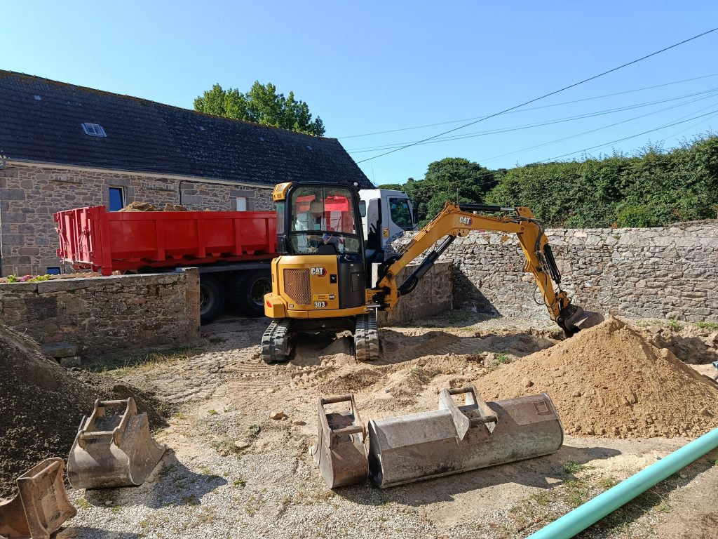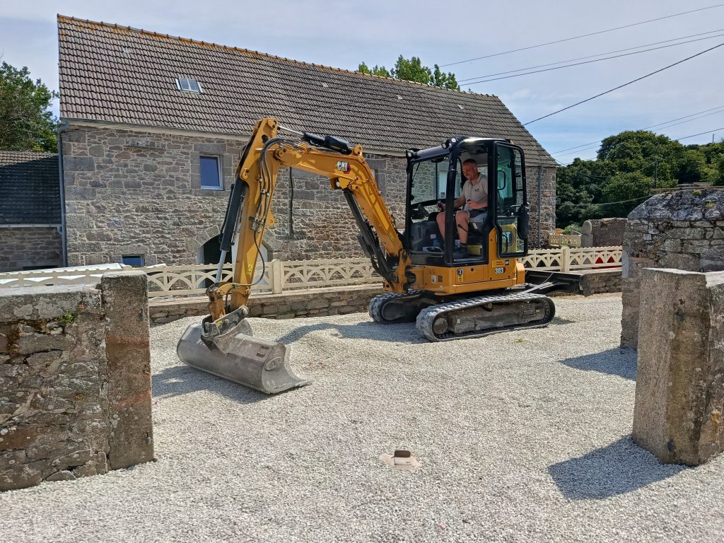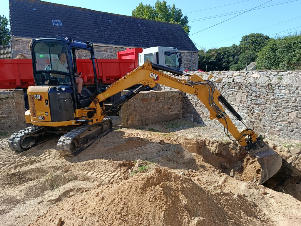 Départ tôt du dépôt de notre partenaire terrassier Fossey Le Blond TP, sous le Soleil, direction Tréauville ( 50340 ), dans le Nord Cotentin, plus précisément la Hague, pour la remise aux normes d'un Assainissement Non Collectif.