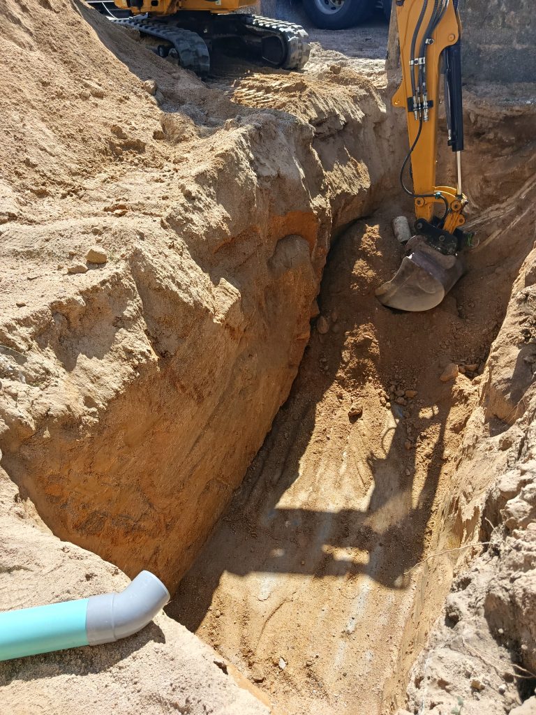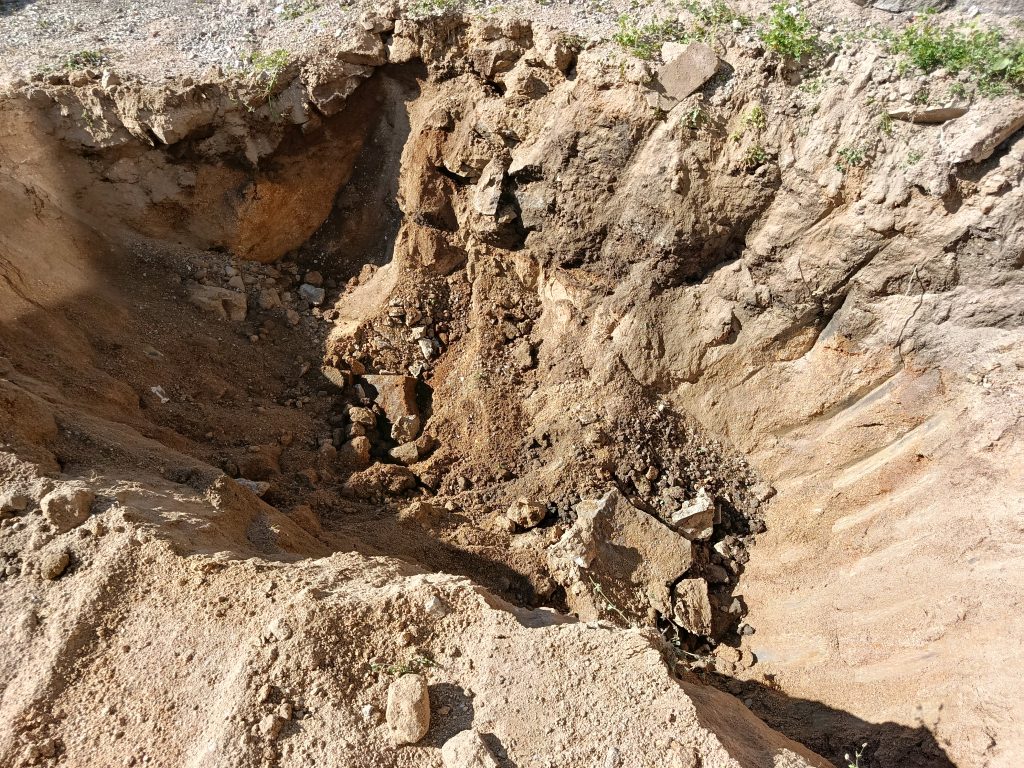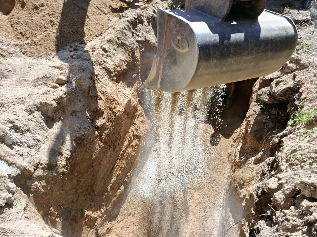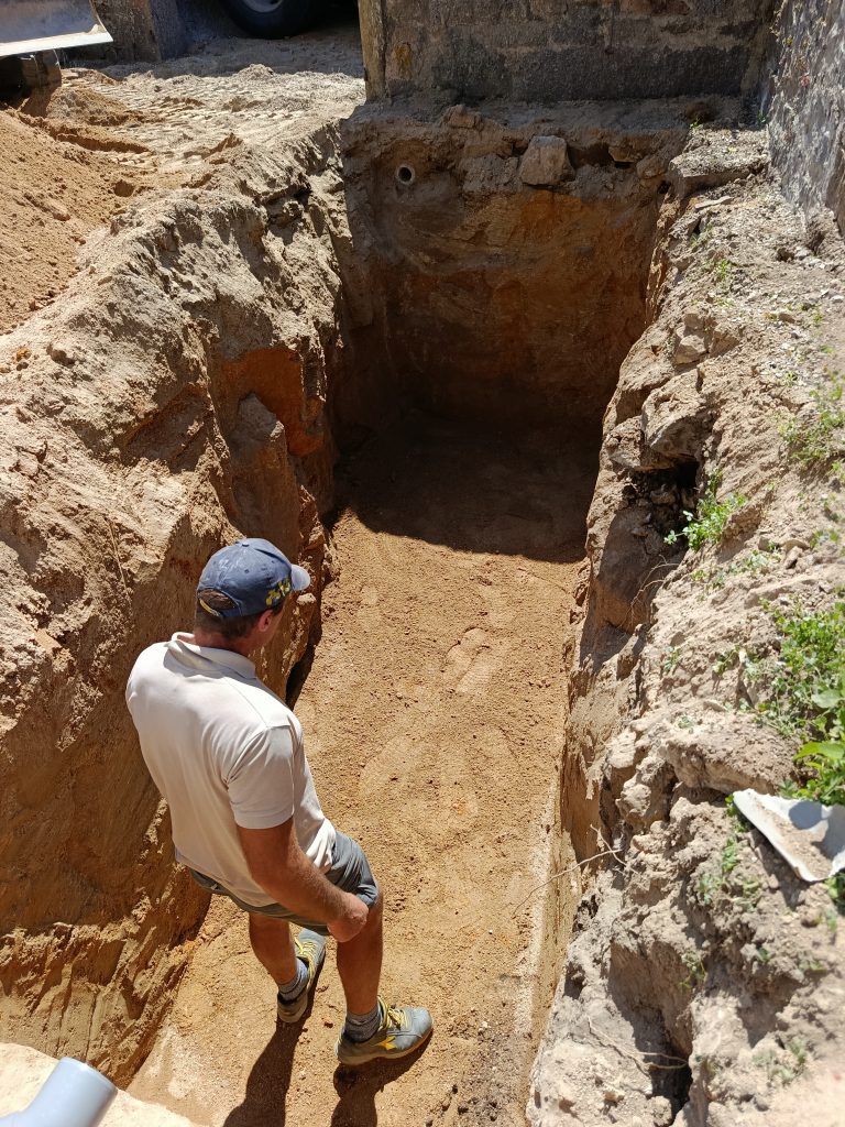 De plus, une inquiétude subsistait quand à la présence du socle granitique. Mais heureusement, nous ne l'atteindrons pas. L'excavation ne posera aucun problème dans un horizon détritique composé d'une arène sableuse.
