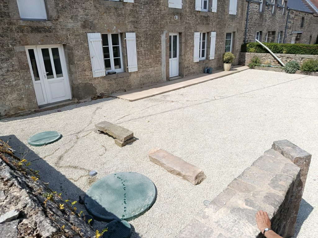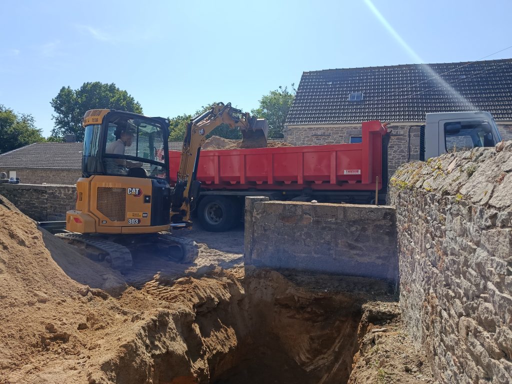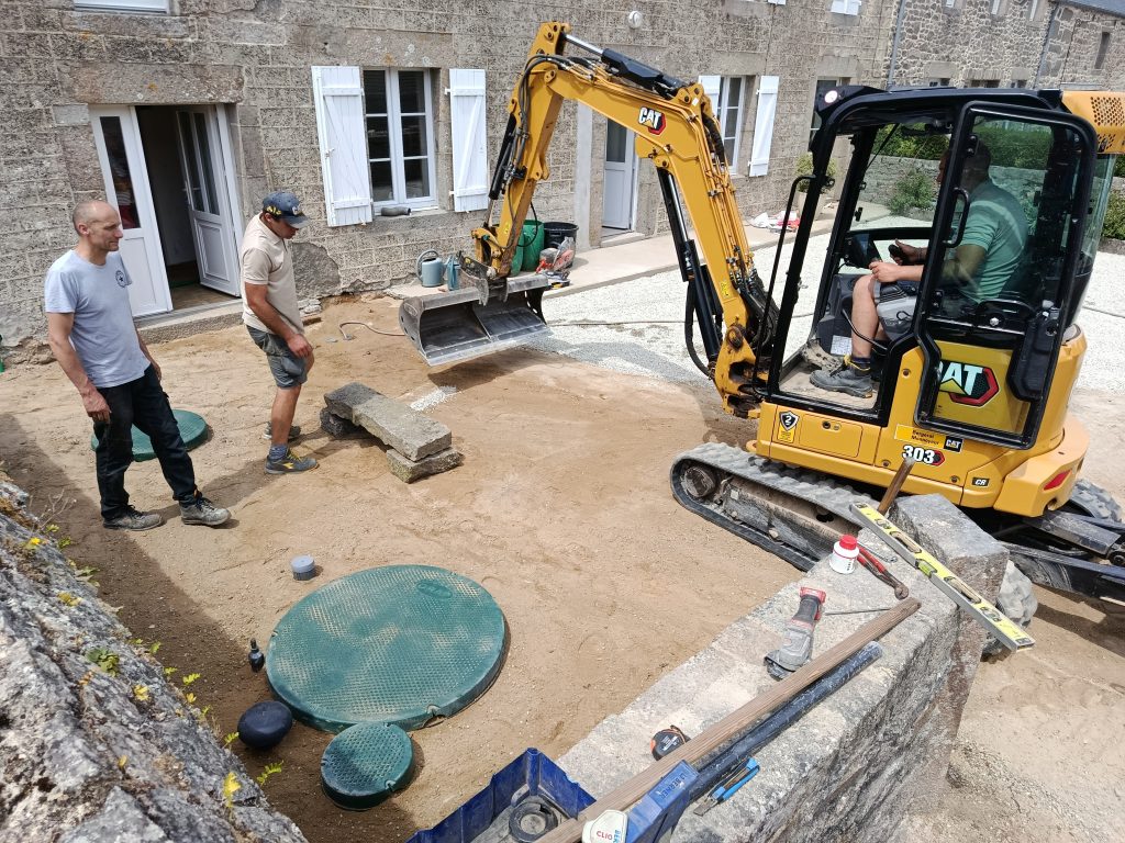 La réalisation, confiée à notre fidèle partenaire terrassier installateur Fossey Le Blond TP, n'était pas évidente, avec peu de place pour les manœuvres.
